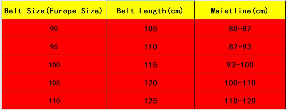 The belt length is from105cm-125cm.If you need larger size, please contact sales service, and the size we showed on the belt is EU size but not belt length, so please don’t mix-up and open the dispute.