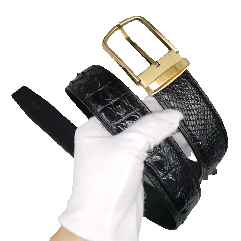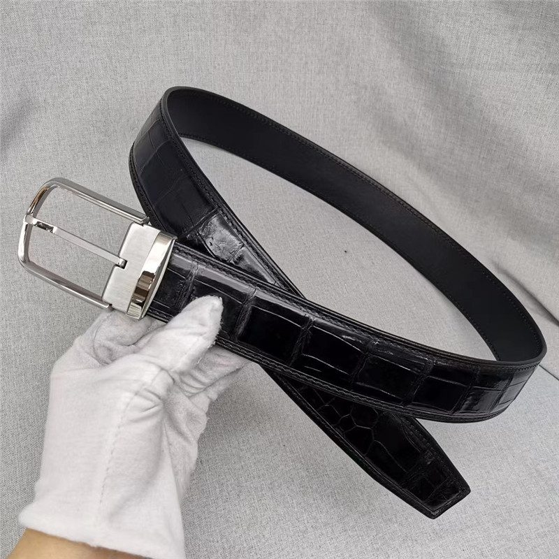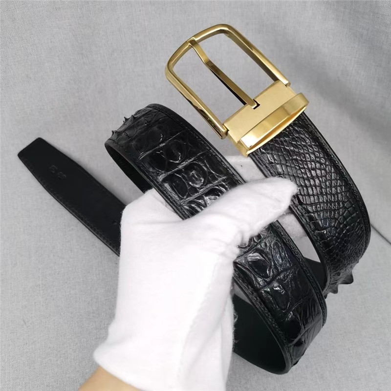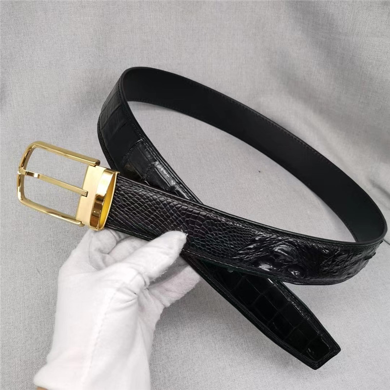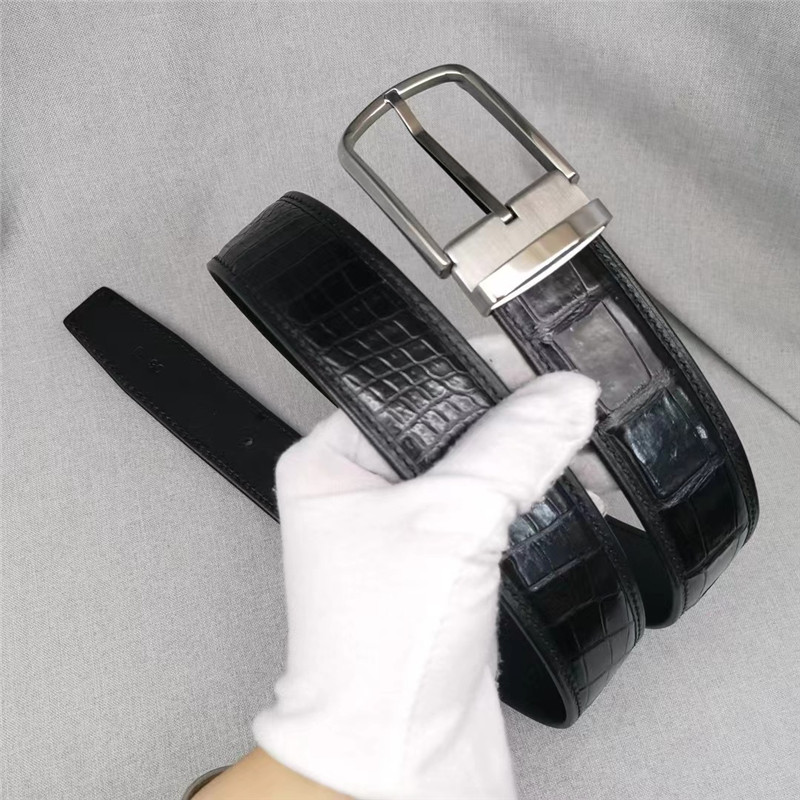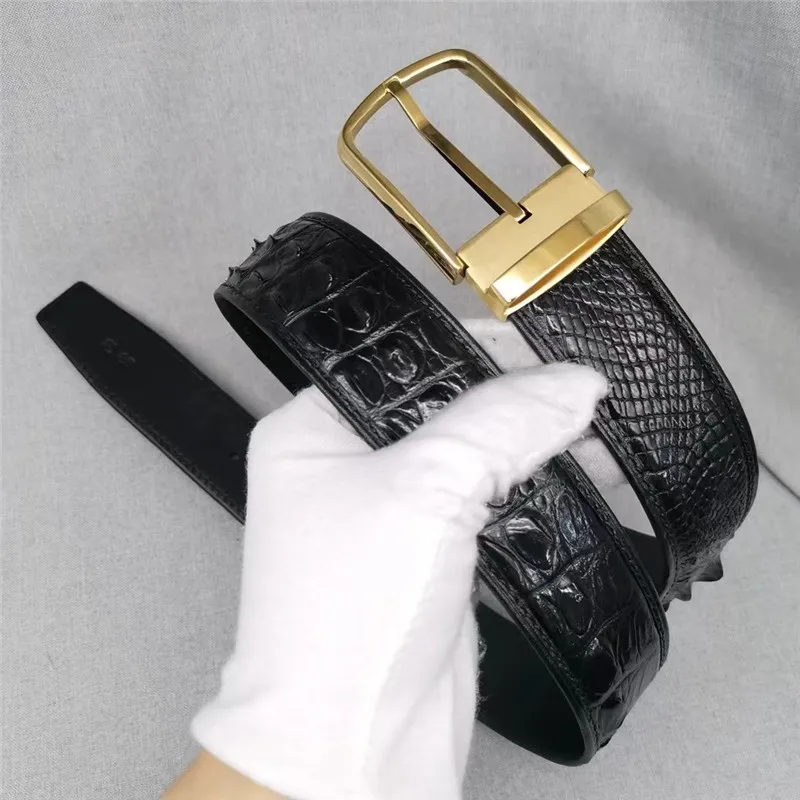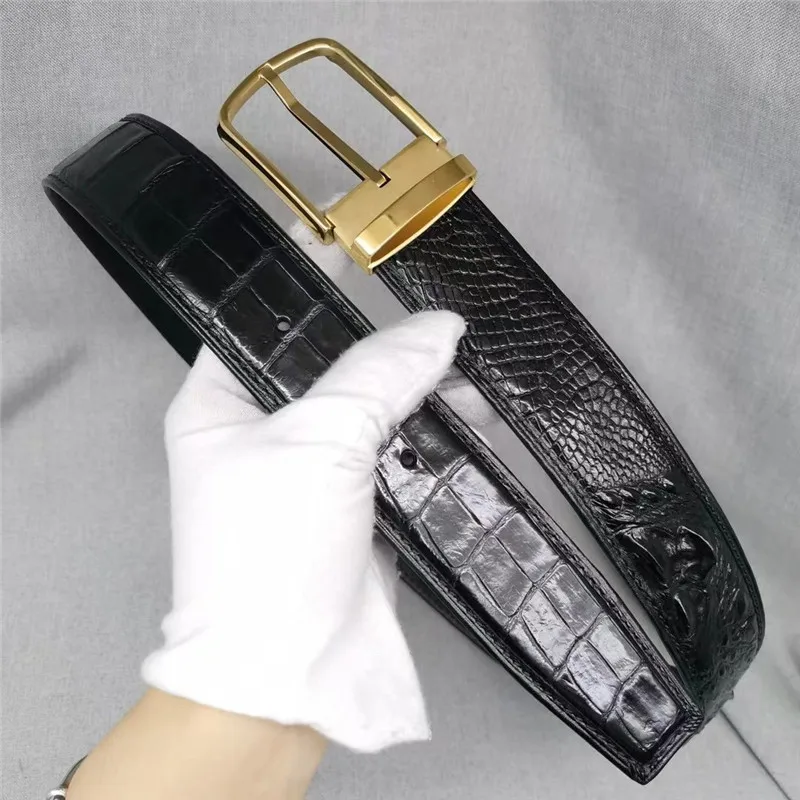 • Authentic Exotic Crocodile Skin Classic Steel Pin Buckle Men Black Waist Strap Genuine Alligator Leather Male Fancy Brown Belts