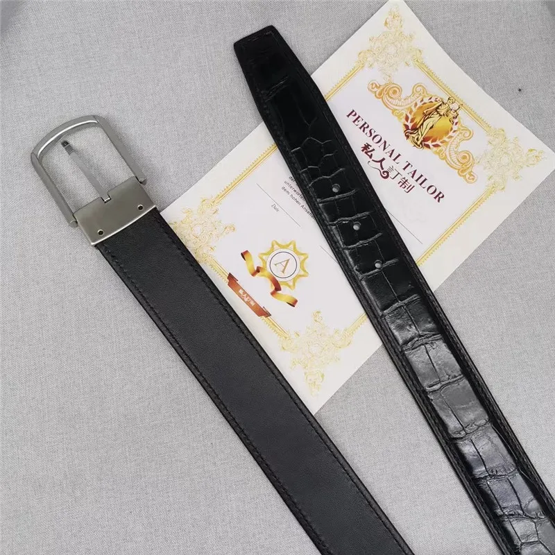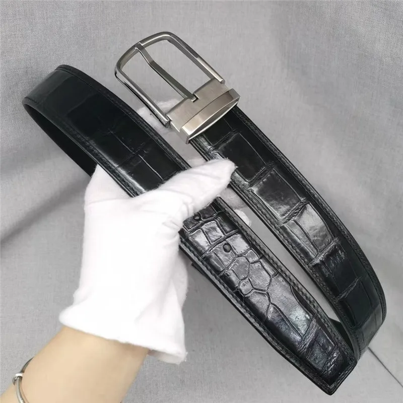 Authentic Exotic Crocodile Skin Classic Steel Pin Buckle Men Black Waist Strap Genuine Alligator Leather Male Fancy Brown Belts