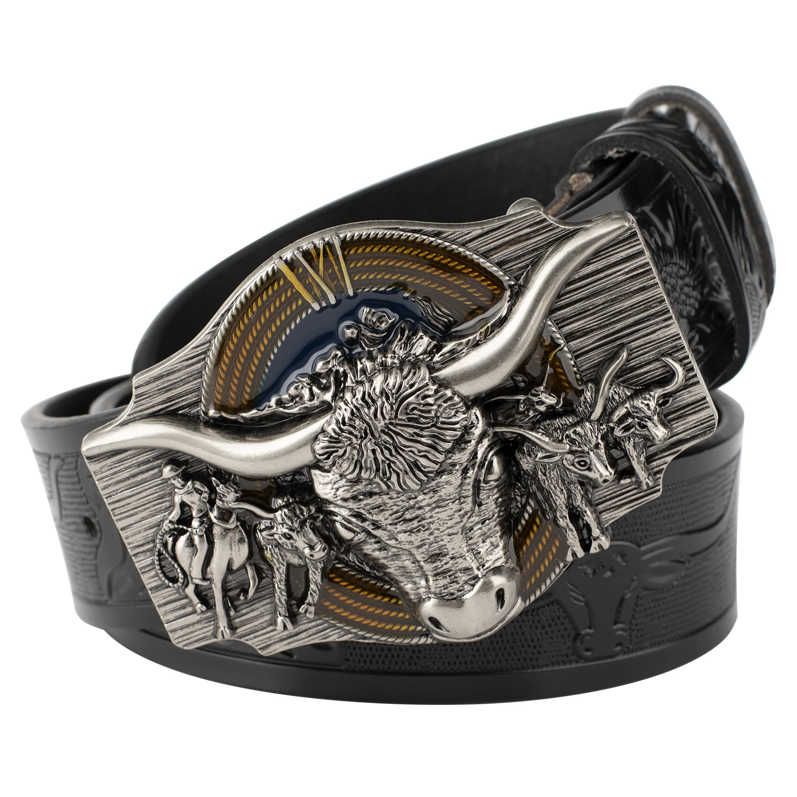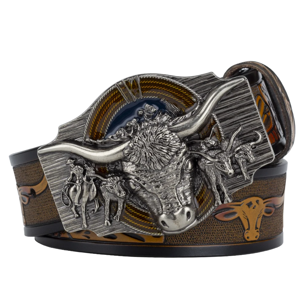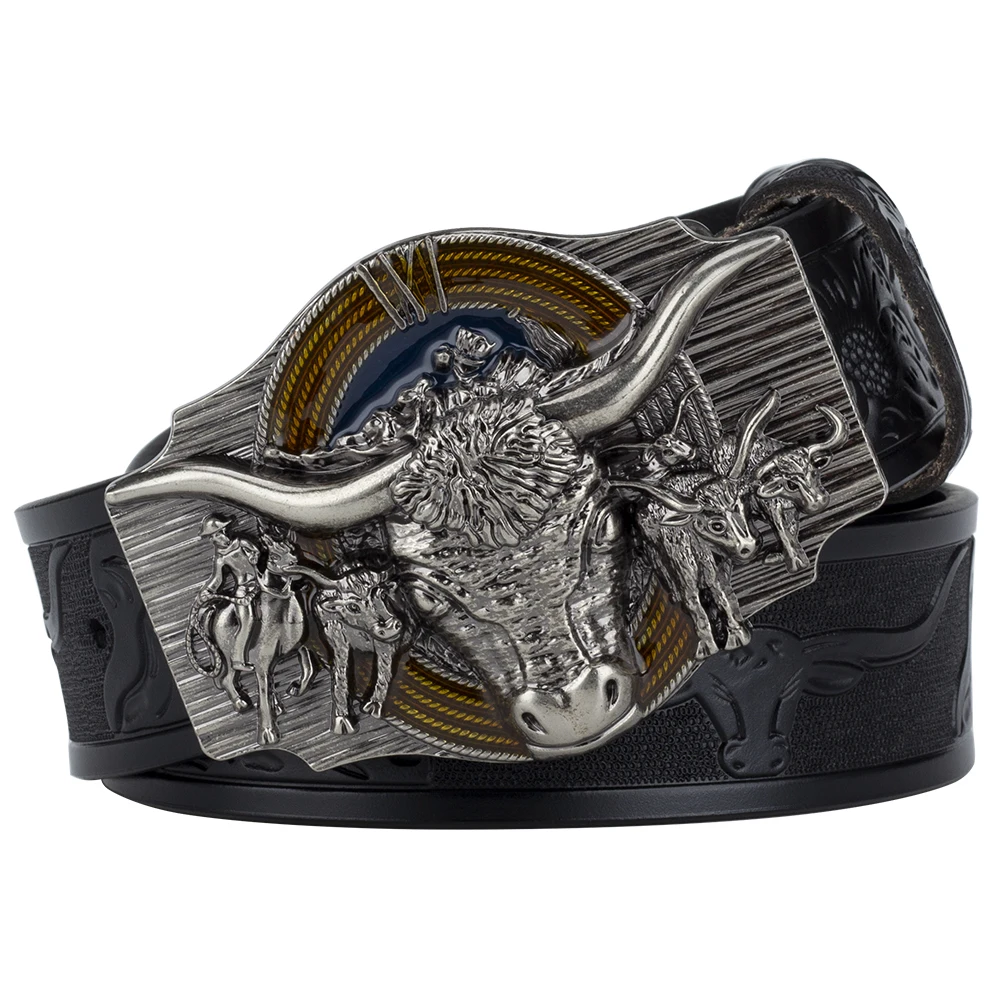 • Cow Embossed Belt Genuine Leather Leisure Cowboy Big Agio