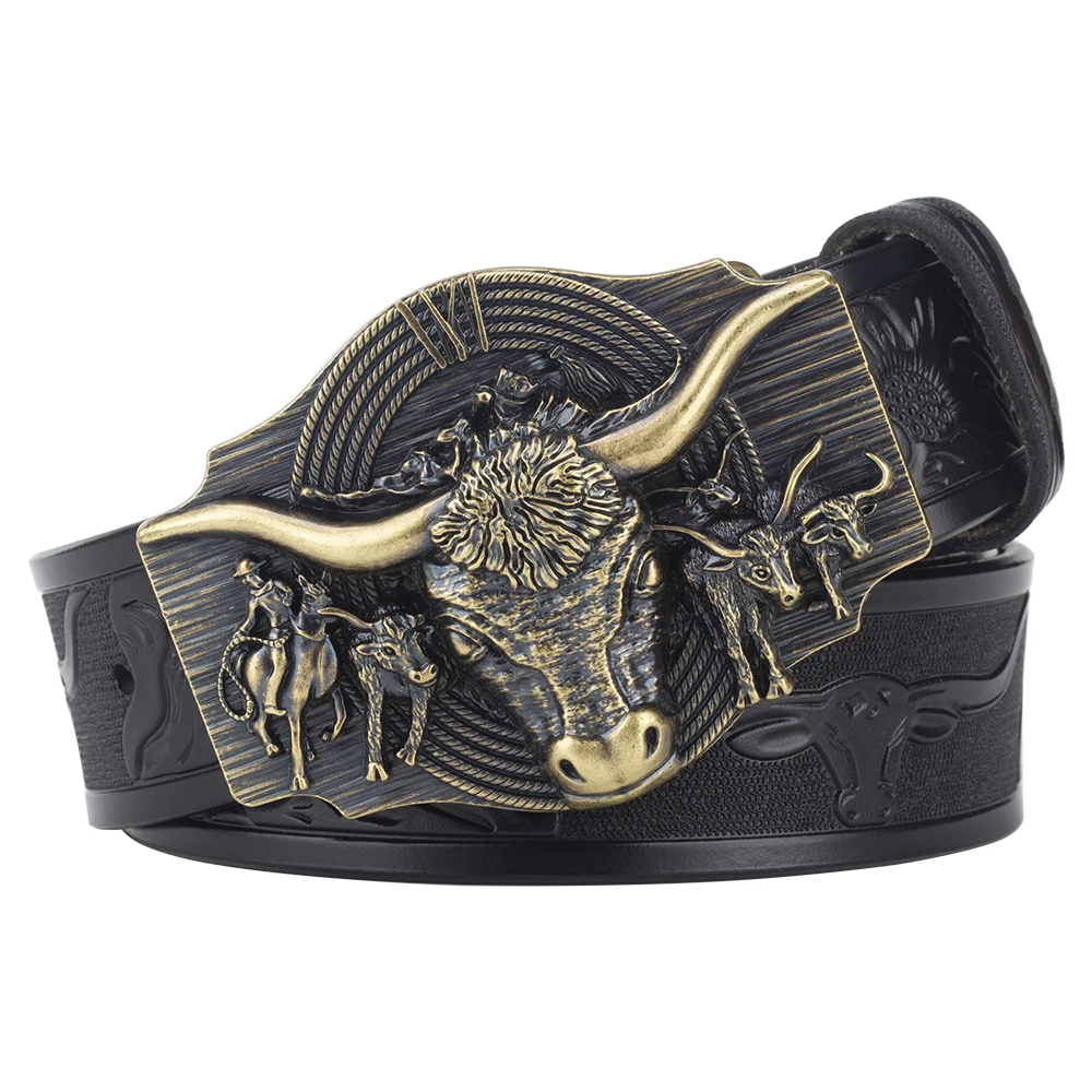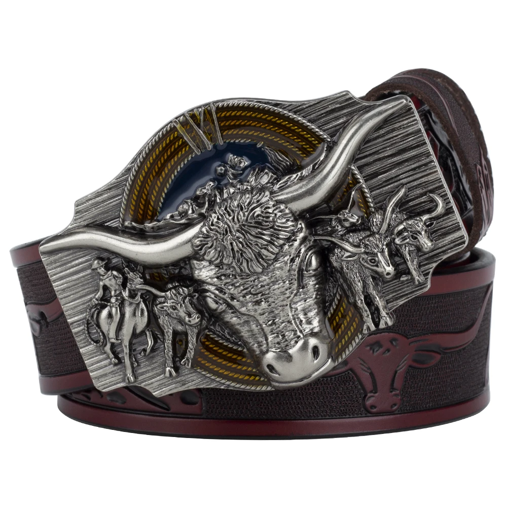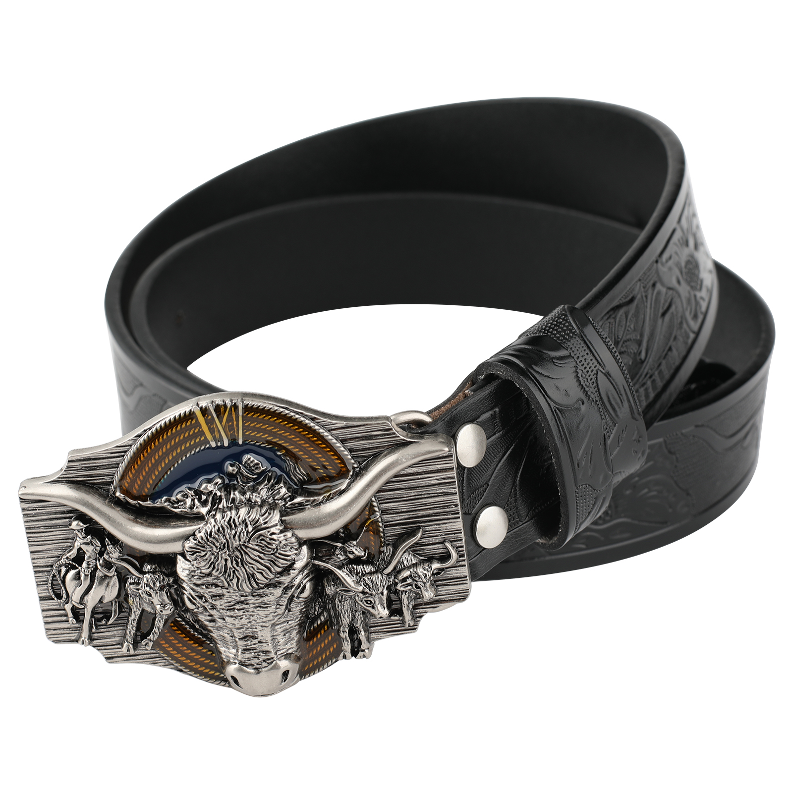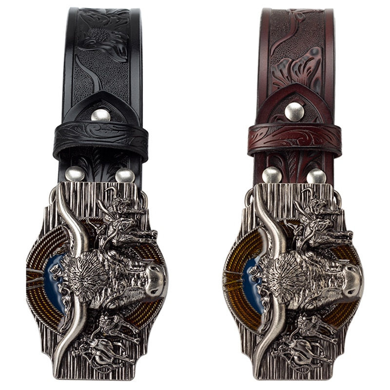 • Cow Embossed Belt Genuine Leather Leisure Cowboy Big Agio