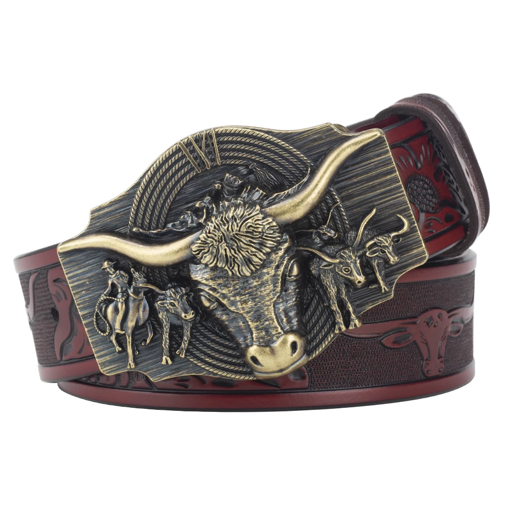 Cow Embossed Belt Genuine Leather Leisure Cowboy Big Agio