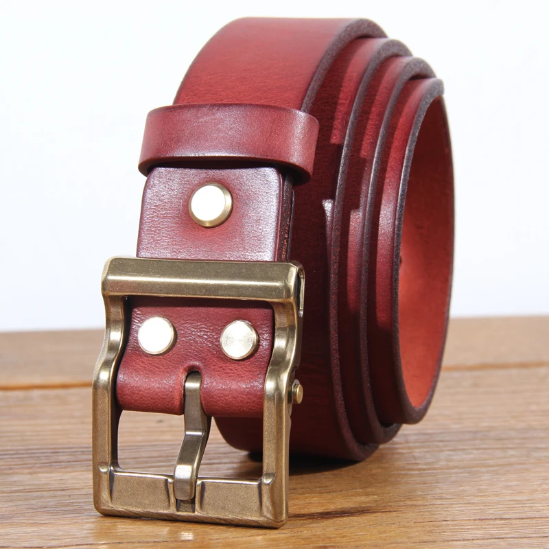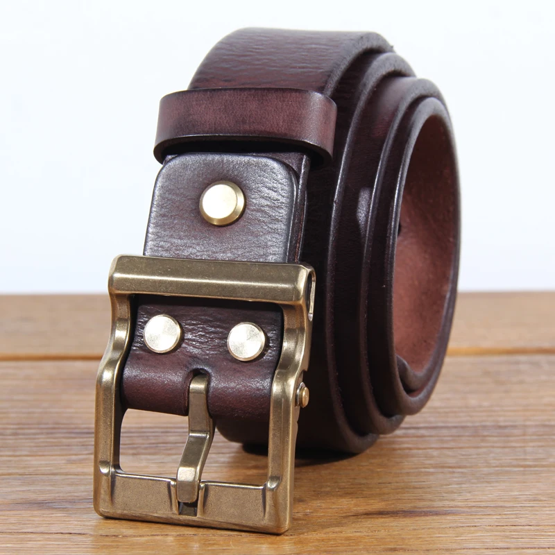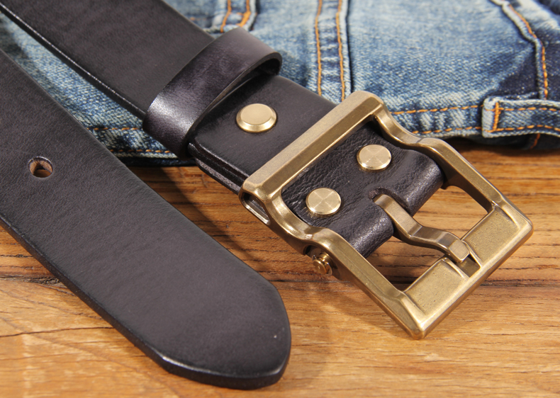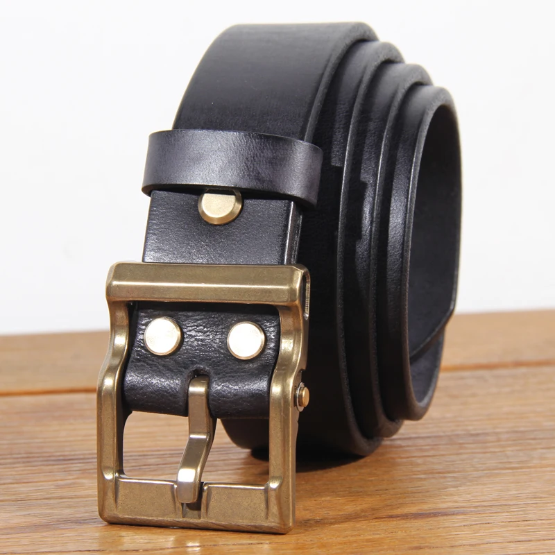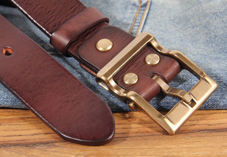 Retro Heavy Metal Rock Style Brass Pin Buckle Casual Men’s Leather Belt Vintage Luxury Handmade Top Layer Cow Jeans Soft Belt